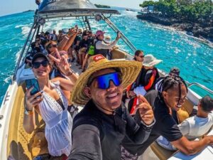 La Excursión 5 Islas VIP te llevará a recorrer las playas más hermosas del Parque Natural Islas del Rosario, con paradas en islas icónicas, actividades acuáticas, música, gastronomía y atardeceres inolvidables.