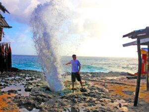 Finaliza el recorrido en este fenómeno natural que sorprende a todos. Cuando las olas golpean con fuerza los túneles subterráneos, el aire comprimido sale disparado por el hoyo generando un espectáculo natural divertido e inolvidable.