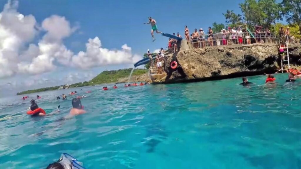 – West View: Este es para los aventureros. Tiene un trampolín alto, un tobogán que cae directo al mar y una zona de buceo. Es más concurrido, suena música fuerte y hay mucha energía. El agua es tan cristalina que ves el fondo a varios metros de profundidad.